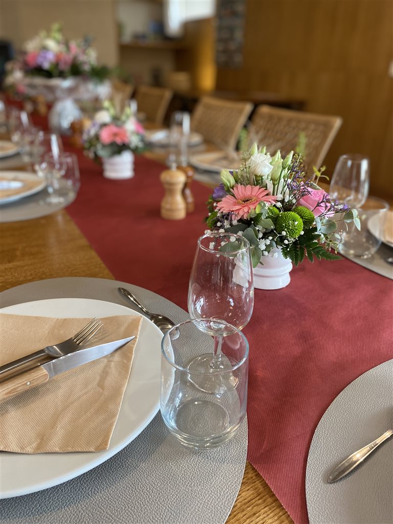 We offer: teas, coffee, milk, chocolate, fruit juices, pastries, homemade cakes, bread, cereals, yogurts, fresh fruit and homemade jams. Partly salted, fried eggs, scrambled or omelette, smoked ham and local cheeses.